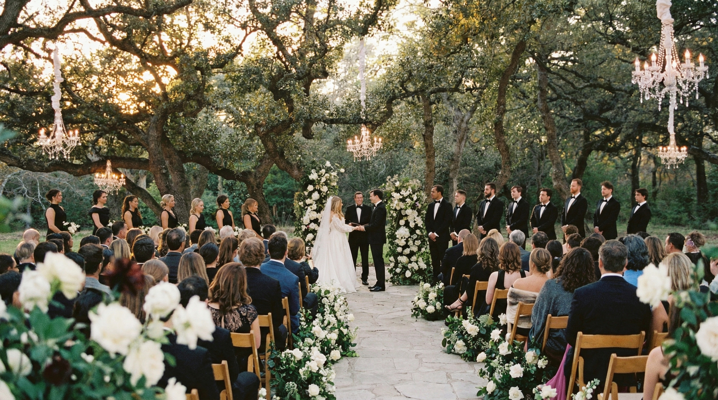 Standout shot: Ceremony in the Pecan Grove at golden hour.