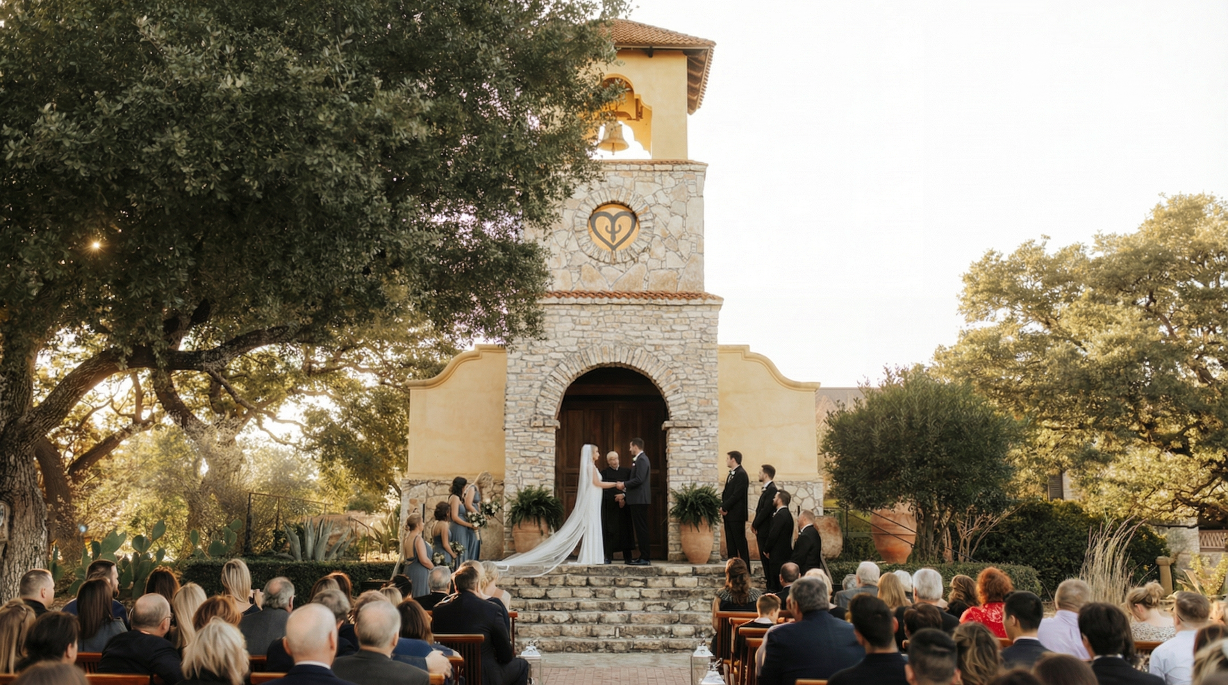 Standout shot: Ceremony in Ian's Chapel with Hill Country views.